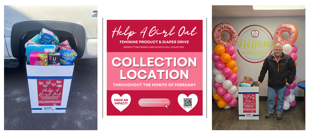 March is Water, Sanitation, and Hygiene Month and we partnered with Help a Girl Out USA in a collection drive throughout February for feminine products and diapers to be donated to organizations in Berks County.