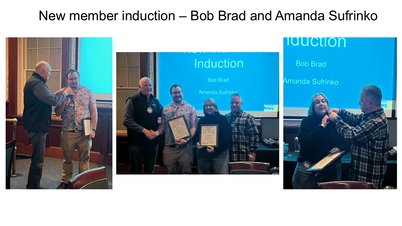 Wednesday, February 4, was our monthly club assembly where we discussed club business, upcoming events, and service projects. In addition, we inducted 2 new members who have already become integral members of the club. We warmly welcome Bob Brad and Amanda Sufrinko to the club.